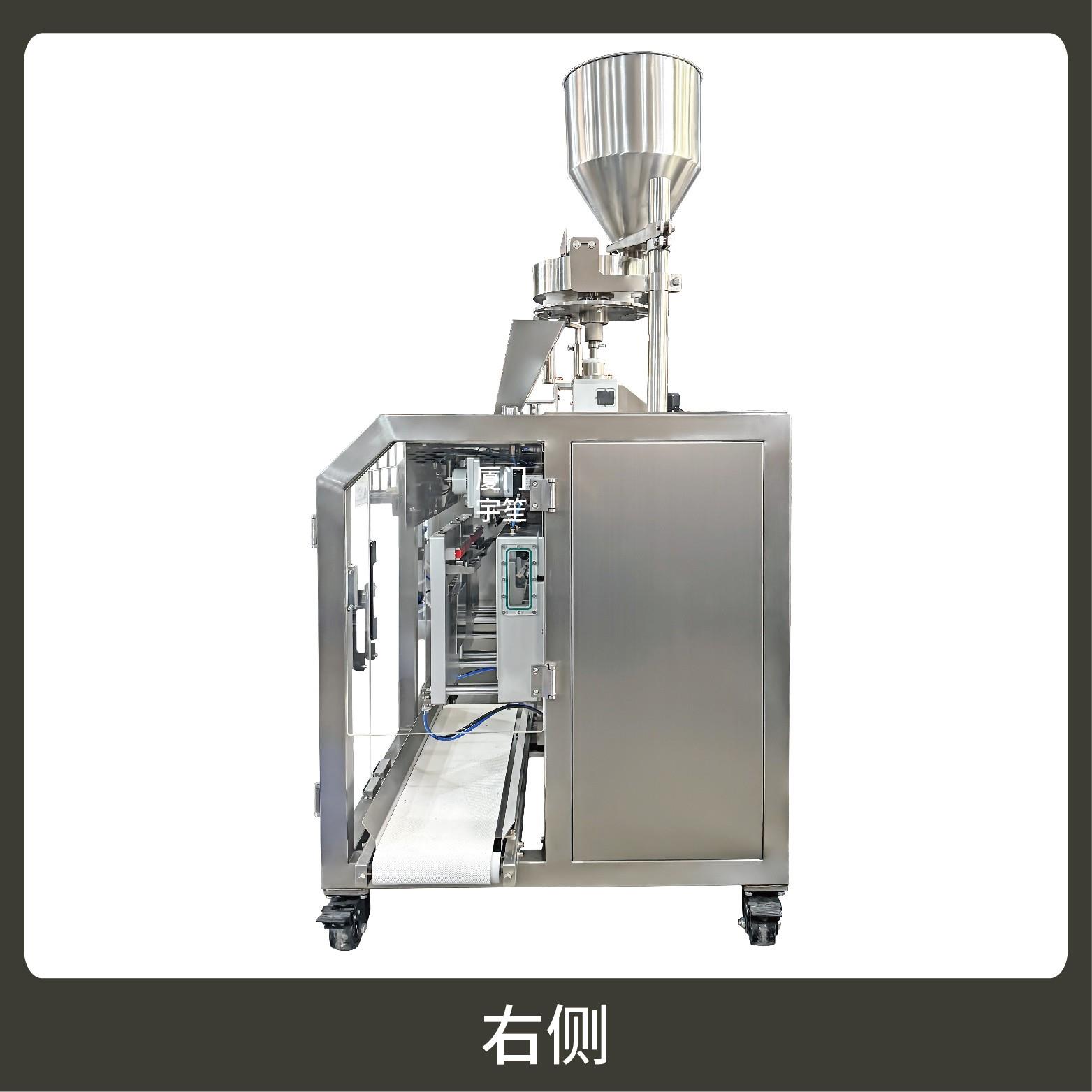 2、包裝流程全自動,可抽真空(真空度可達到-0.1Mpa)??筛鶕?jù)充填物料的性質(zhì)選配不同的下料結(jié)構(gòu)。